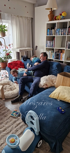 Aztán kinyílt a nappali ajtaja. Azt gondoltuk Barnus vagy Édesapád ébredt fel, minket Astridka már 6 óra óta ébren tartott. Dávid lépett be mosolyogva. Csak délutánra vártuk, de elhozta egy barátja. Boldogan ugrottunk a nyakába mindketten.
