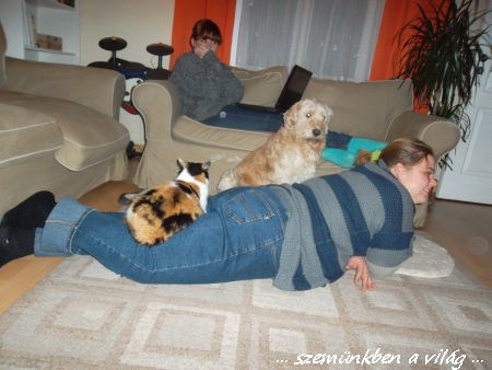 Remélem Gabóka nem haragszik meg amiért felteszem ezt a képet, de annyira aranyos! Sajnos nem sikerült azt a pillanatot elkapni, amikor még Sam is ott volt mellette, mert mikor felálltam a fényképezőért, akkor persze utánam rohant.