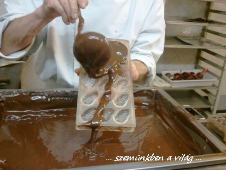 És aztán kiderült, hogy azokat a mindenféle formáju csokoládékat is ugyan igy csinálják. Van a forma, azt kiöntik csokival, megszáritják és kész. Persze nem ilyen egyszerü ez, hiszen óvatosan kell dolgozni, de azért mégis meglepő, hogy nem egy bonyolult dolog.