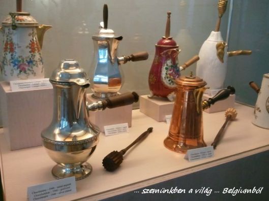 Itt a forró csokoládé tárolására és kavargatására szolgáló gyönyörü edények láthatók: