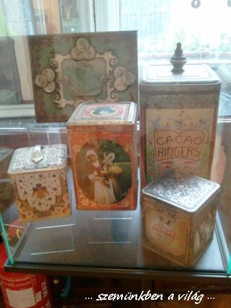 Az első teremben régi és szebbnél szebb csokoládé és kakaó tárolók voltak:
