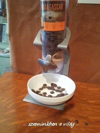 Rá volt irva az adagolókra, hogy honnan származik a csokoládé és mennyi kakaót tartalmaznak. Én is megkóstoltam, azért tudjátok ezek az igazi csokoládék még nekem is finomak, izletesek voltak.