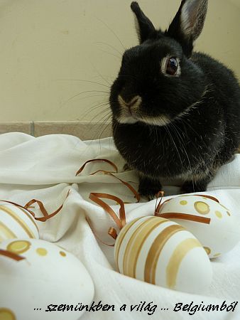 lekéstem a húsvéti jókívánságokról, de ehhez a nyuszis képhez írnom kell, annyira tetszik. a ti kis fekete nyunyikátok nagyon jól illene színben a mi két fekete macskánkhoz;) milyen szépen pózolt a húsvéti felvételhez! az új fejléc is nagyon jó lett. árvácska és jácint pont ezekben a színekben van nekem is.