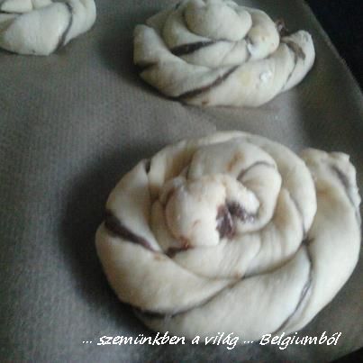Ez pedig a másik mostani kedvenc, a mogyorókrémmel töltött tekercs sütés előtt: