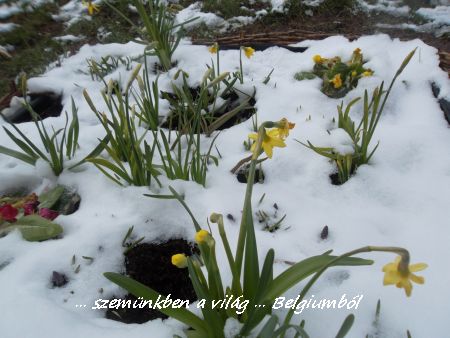 Ha használna valamit a siránkozás vagy a kérlelés, akkor már biztos tavasz lenne, hiszen egész Europában ilyen össze-vissza időjárás van, de sajnos nem igy van. 😦 Igy aztán szomoruan nézelődünk kifelé az ablakokon és nézzük a hóban megbuvó nárciszokat,
