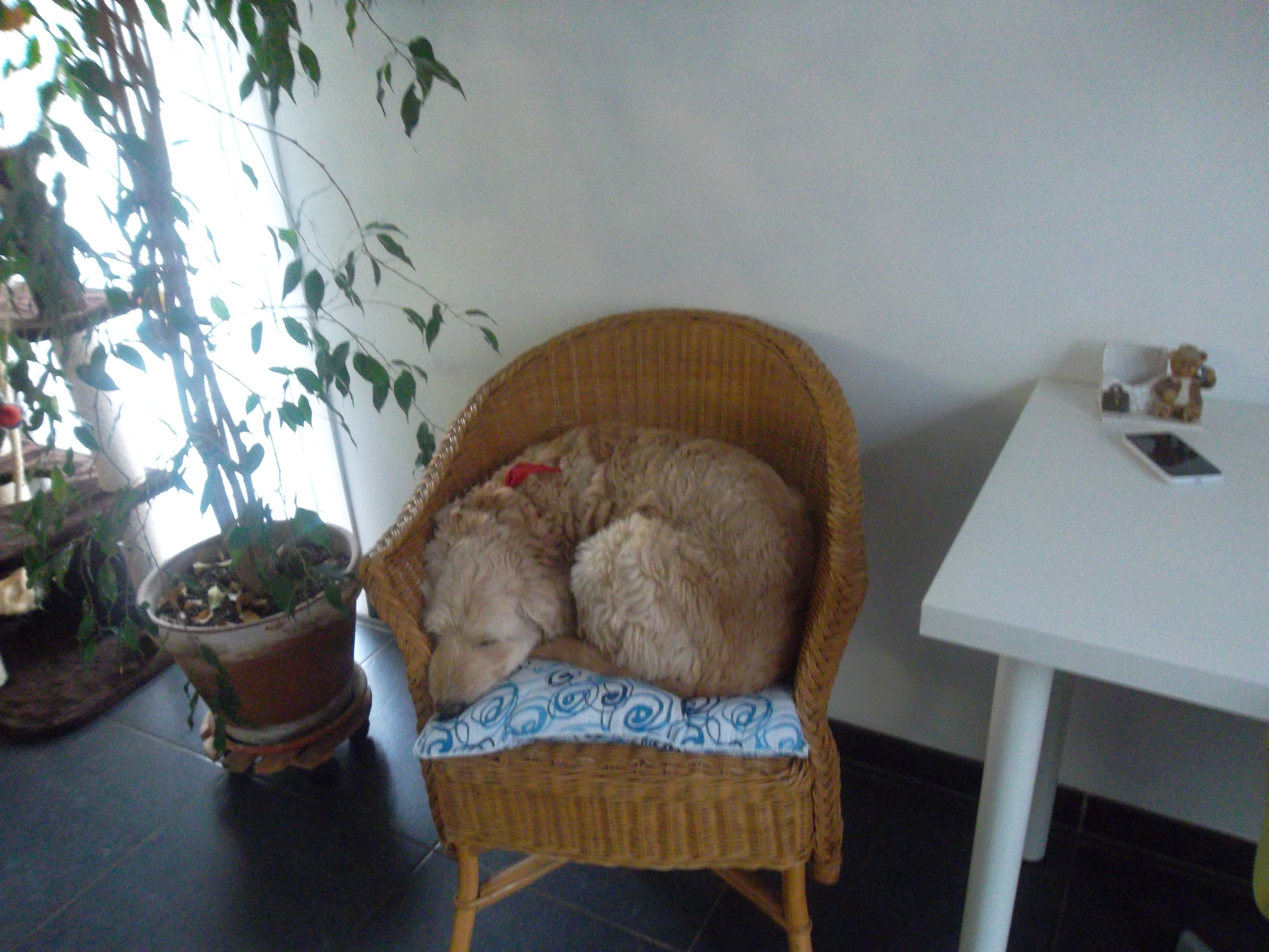 A régi ágyat nem használtuk, viszont Taszika nappal sokszor aludt rajta. Nyugodt, csendes hely volt a lakásban. Két napja már elvitték az ágyat, és naponta többször is láttam, hogy betrappolt, szétnézett, jött vissza. Aztán két nap után nézelődött, majd szépen felugrott az asztal mellett álló fotelba, összehajtotta magát és egyből elkezdett durmolni. Azóta is így megy ez minden nap: