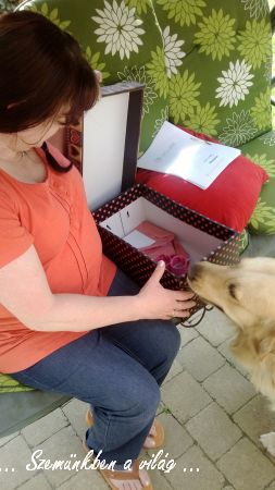 Kaptam egy ajándékdobozt, a lányok varrtak nekem mindenféle hasznos és aranyos dolgot a kis íróasztalomra a kis birodalmamba,