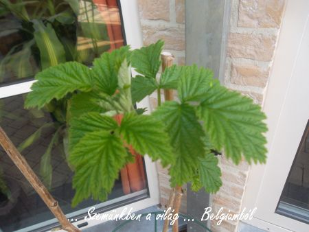 Itt van mindjárt a málna. Vettünk két félét, az egyik szép kis bokrot hozott a tetején, alul meg már jönnek a jövő évi hajtások. Gyuszit kérdeztem is mikor megy hajtást szedni? 🙂 De sokat csináltuk még gyerekkorunkba! Meg később is, míg volt málnánk otthon, Nagyrédén.