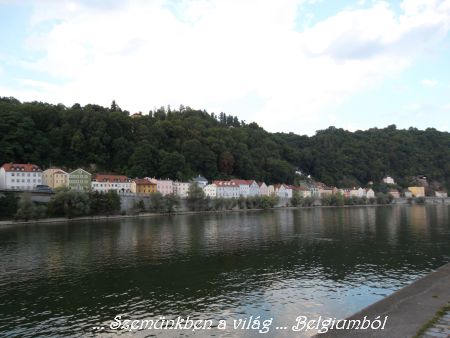 Hőlégballon integetett színesen, boldogan a másik oldalról. Később rájöttünk, hogy ez valami látványosság lehet, mert időnként leereszkedett majd újra fel, talán valamiféle fizetett látványosság, turistáknak mutathatták meg Passau-t a hőlégballonból.