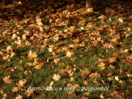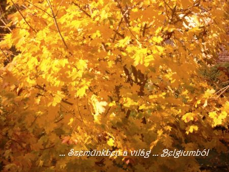 Idén valahogy tipikus belga ősz volt. Nagy esőkkel, napokig tartó borúval, sötéttel, de amikor kisütött a nap, akkor hamar meleg lett és csodaszép lett az minden. Az udvaron a fákon a levelek késő ősszel kezdtek el sárgulni, barnulni, nem volt szívük megválni a fától, hiszen olyan sok szép időt töltöttek együtt. 🙂 Sőt, még most is, november végén is jó pár fán a fele levélkorona rajta van. A gyönyörű őszi napsütésben pedig olyan a fák levele, mintha lángolna: