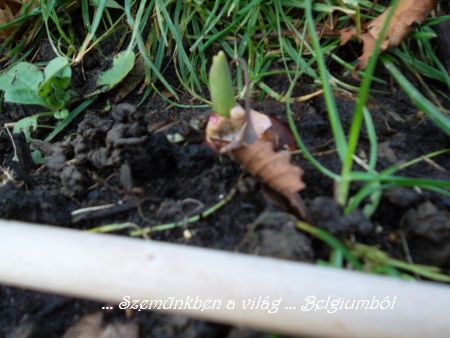 És hogy most milyen idő van? Nézzétek! Ősszel a kis kertecskét betakartuk avarral, mert a kevés földben féltem, hogy kifagynak a hagymák. A hetek óta fújó szél elvitte a levelek nagy részét, alatta pedig kibújtak a mindenféle hagymák új hajtásai. Ha nagyon figyeltek, akkor itt is látszik egy-két kandikáló rügy.