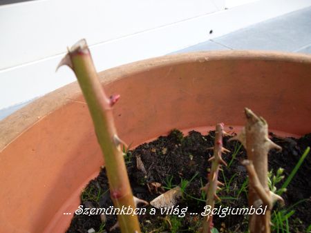 Szegény kicsi rózsáim, őket is becsapta a meleg. Mondjuk nekik nem lesz bajuk ha mégis jön a hideg, mert mennek a garázsba. De bizony már ott vannak a rózsaszín kicsi rügyecskék.