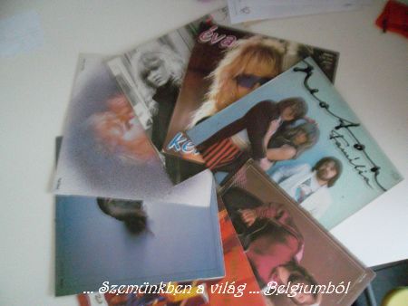 Itt vannak a lemezek. Törölgettem a borítókat, összeraktam előadó vagy fajta szerint. Még emlékszem, hogy egyik másik darabért Gyuszi bizony gyűjtögette a kis forintocskáit, sűrűn jártunk fel Gyöngyösön az Orczy-kertnél lévő üzletbe, a toronyba, hogy megnézzük meg van-e még, akkoriban egy-egy darab volt csak a boltokban is. Izgultunk, hogy mire sikerül összegyüjteni az árát, akkorra nem vegye meg más. Később jó pár darabot már közösen  vásároltunk meg. Biztos vagyok benne, hogy nincs itt mind, majd valahonnan egy lezárt dobozból előkerül a többi is. De párat megmutatok nektek, nosztalgiázzatok velünk. 🙂