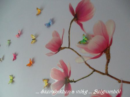 Egyből olyan lelkes is lett, hogy megkaptam egy másik fal dekorációjának összeállítását is. Volt ott sarokból lelógó inda, meg kismadarak, meg mindenféle virágok. Hááát, jól van! 🙂 🙂 🙂 Majd nyitott szemmel járok, de meglesz, az biztos, már csak idő kérdése. 🙂