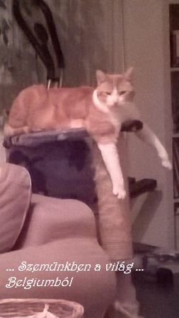 Tegnap este meg vacsi utáni nyujtó gyakorlatait végezte a kaparófa tetején: