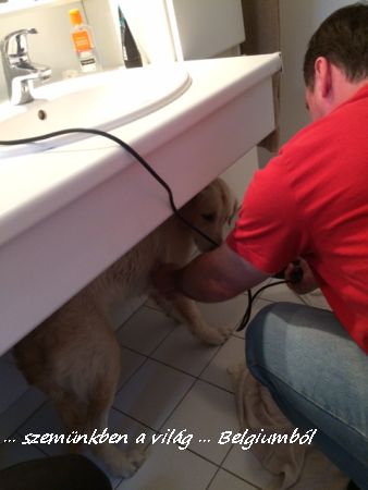 – Huhh, elzárták a csapot. Végül is nem is volt olyan rossz az a víz, hiszen elvégre azt mondják, hogy én vízi kutya vagyok, meg majd jövőre ha nagy leszek úszunk Sam-mel a tengerbe, biztos jó lesz, bár fogalmam sincs mi az. 😀