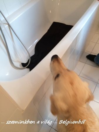 Óvatosan jön a fürdőszobába utánam, belenéz a kádba. Fogalma sem volt, hogy mi következik, de akkor sem tetszett neki.