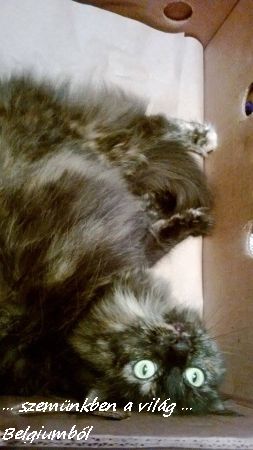 Jaj, Samuka, kis fény az éjszakában. Hát édes ez a cica, nagyon szeretem! 🙂 ❤ Gyönyörű szemeivel mindig követ, egész délelőtt rajtam lóg, majd elvonul alukálni valahová. Idén majdnem elveszítettük őt is. 😦 Kiderült, hogy a vizelete tele van kristályokkal, e miatt nem tudta kiüríteni a hólyagját. Napokig volt kórházban, soha nem felejtem el, ahogy a ketrecből kivéve hozzám bujt. Drága kiscicám! Azóta speciális kaját kap, nincs semmi baj. Egyesek szerint kis (vagy nagy) dagi, hát nem is tudom. 🙂