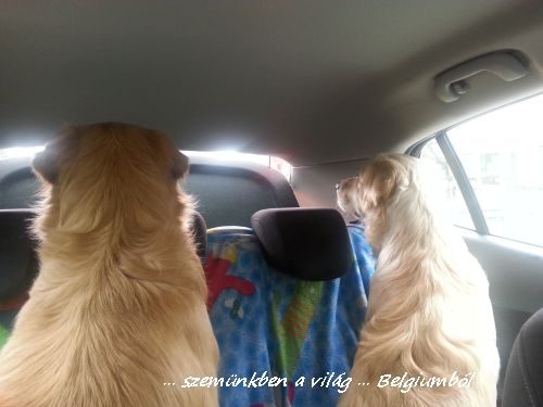 Elérkezett a szombat reggel, már 7-kor felkeltünk mindannyian, nagy volt az izgalom. Persze csak a részünkről, a kutyiknak fogalmuk sem volt hová megyünk. Kicsit aggódtunk is mit fog szólni Charlie, nem-e lesz hiszti. Aztán eszembe jutott, hogy vigyük el támogatásként Sam-et. Mindkettőnek jót fog tenni, Charlie örülni fog, hogy ott lesz jóbarátjaapukájatestvére, Sam meg szokja a közeget, hiszen egy hét múlva ő fog következni, szombat délután őt hozzuk élete első pancsijára (na az érdekes lesz!!!). De bíztam nagyon Charlie-ben, hogy ha ott lesz a gazdi, akkor nem lesz semmi gond, baj, cirkusz. És akkor most fényképes összefoglalónk következik! 😀 😀 😀