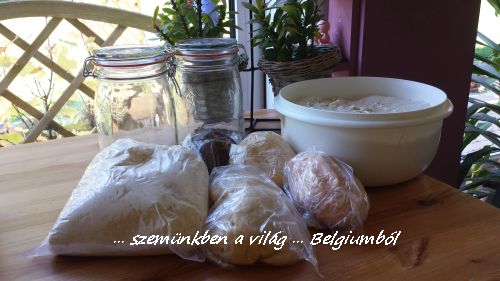 Rendesen össze kellett logisztikáznom, mert kenyeret, bagettet is sütni szerettem volna a négy féle keksz mellett. Egyiknek kelni kellett, a másiknak állni a hűtőben ennyi-annyi időt. Nem egyszerű egy konyhában, egy sütővel, de azért gondoltam megpróbálom, mert azok az üvegek nagyon üresen árválkodtak az asztalon. 🙂
