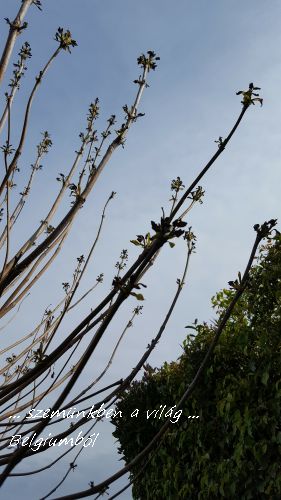 Van három fánk is. Fogalmunk sincs milyen fajta, hiszen nem láttuk őket múlt nyáron. Esztikém azt mondta, hogy ezt két évente le kell erősen metszeni, különben óriásira megnő. Nem tudjuk, ha esetleg kihajtanak, akkor meglátjuk és utána járunk fajtának, tartásnak. Azért mondom, hogy esetleg kihajt, mivel múlt héten itt többször volt fagy és sajnos a kis fáink hajtásai lefagytak, azok a hajtások tényleg feketék: