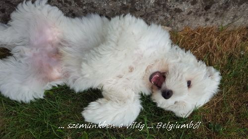 Lesz munka, ma már ilyen szép nagy a szőre. A szemecskéje nem nagyon látszik, ha hosszabb lesz a szőre akkor két oldalra fog szétválasztódni, most viszont sok dologtól megijed, mert nem látja rendesen. Kapott egy kék, fiús gumit a buksijára. Itt kb. úgy néz, mint aki szépsége teljes tudatában fekszik, hogy nézd milyen gyönyörűséges vagyok! Imádja a fésülködést, szereti ha rajta matat valaki. 🙂