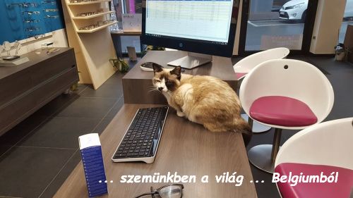 Közben kiderül, hogy bár Dávid régen szinte csak kontaktlencsét hordott, most évek óta mégis inkább szemüveget, és aggódott ha most berakja a lencsét attól el fog fáradni a szeme és nem tud majd rajzolni. Erre is volt megoldás. 🙂 Előkapart valahonnan egy szemüvegkeretet és belevágta a lencsét délutánra, így lett lencse is, szemüveg is. 🙂 A cicát engedéllyel lefényképeztem, otthon feltettem a facebook oldalamra, hogy nem csak cica van az üzletben, de még a kiszolgálás is nagyszerű és segítőkész volt az optikus. 🙂 Délután ránéztem az oldalra, látom valaki megosztotta a bejegyzésem. Hát csak megnéztem ki volt az, és hát ki? Az optikus srác. 🙂 Nagyon szimpi volt. 🙂 Éjszaka mielőtt elmentünk volna aludni még egyszer bekukkantottam a bejegyzéshez és ez várt a kommentekben, MAGYARUL: Köszönöm a szép szavakat! És az alábbi kép:
