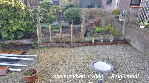 Elterveztem én, hogy a fák tövében lesznek az eperpalánták. Hát, a kutyikák szerint nem. Őszig nem is volt semmi gond, megtanulták, hogy nem mennek bele. De télen a sötétben nem láttuk, hogy merre mászkálnak és sikeresen ki is járták az epreket. Ennyi maradt belőlük. 😦 Szerencsére maradt annyi tő, hogy meg fog erősödni és el fognak szaporodni, most itt fognak lakni ebben a felemelt kertecskében.