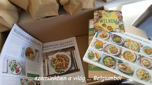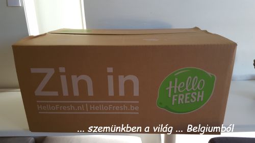No jól van, ez akkor sem maradhat így tovább. A lebutított (Gyuszi szerint felokosított) facebook oldalam nem sok hirdetést dob már fel, leginkább bio és hasonlókat, helyi gazdálkodók hirdetéseit, de azt nem bántom, sosem lehet tudni, hogy mire lesznek még jók. És pont ez történt! Egy hirdetés, amiben kínálják a kis portékáikat, ki van porciózva minden hozzávaló neked csak meg kell főzni. Gyorsan megkérdeztem a belga oldalamon, hogy esetleg valaki főz-e ily módon, és kiderült, hogy igen sokan. Elmondtam Gyuszinak, hogy mit gondoltam, megnéztük az aktuális ajánlatot és szimpi volt, megrendeltük. Tegnap hozták az első dobozkánkat erre a hétre, mi végül a HelloFresh céget választottuk, mert mindenki náluk van, róluk tudtak véleményt mondani ami igen kedvező volt.