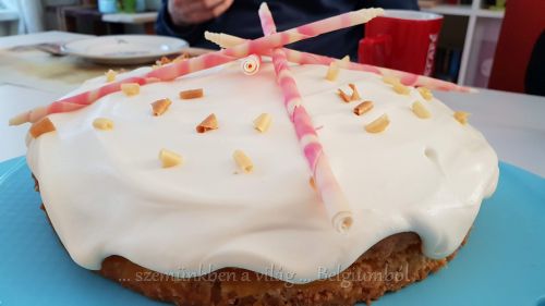 Drága Esztikénk sütött glutén- és laktózmentes tortát a családnak, nagyon-nagyon finom volt és hát szépséges is. Igazi meglepetés. 🙂 A csacsogás otthon folytatódott egy-egy csésze kávé mellett. 🙂