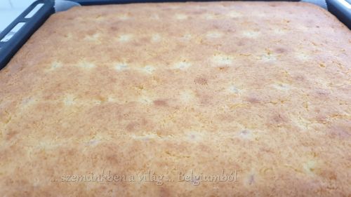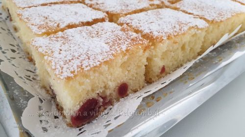 A cukrot és a tojást fehéredésig keverem, majd a vajat, tejfölt, a lisztbe kevert sütőport a tésztához keverem. Sütőpapirral kibélelt tepsibe,180 fokra előmelegitett sütőbe teszem alsó-felső sütésre. Kb. 35-40 perc, sütőtől függ az elkészitési idő. A tetejére én leginkább lecsöpögtetett meggyet szoktam tenni, de készitettem már almával, mandarinnal, barackkal is. Télen egy kávéskanál fahéjat is szoktam a tésztába keverni, attól olyan jó kis karácsonyi hangulat lesz az egész lakásban. 🙂 Nem szabad megszáritani, ahogy a piskótát sem!