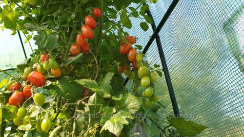 A saláta már a harmadik transzport bokrosodik, nagyon szeretjük, az uborka kikerült a fólia alól, nem vált be, viszont az eperrel karöltve remekül elvannak. 🙂 A cukkiniról már irtam. Nos a másik oldalon van a paradicsom. Nagyon szeretjük a koktélparadicsomot. Vettünk 3 db palántát tavasszal! 🙂 És mára ez lett belőle. Nagyon büszkék vagyunk rá ❤ Esténként csemegézünk, málnát szedegetünk, az epret amit levágtam két hete már megint virágba borult és érik az eper, a fólia alatt pedig lehet kóstolgatni a mézédes paradicsomokat. 🙂 ❤