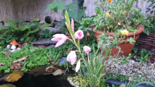 A kicsi tavunk körül is még zajlik egy kicsit az élet. Virágzik a körömvirág és nem tudom milyen fajta az a rózsaszín, de nekem annyira lágy, kedves. 🙂