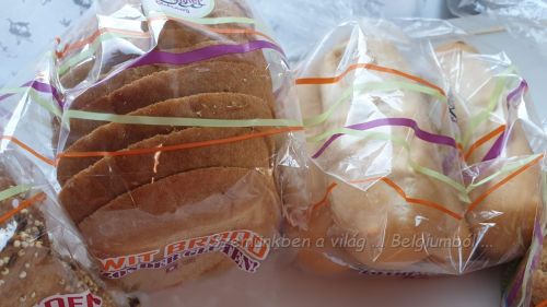 Sok magvas kenyér, én ezt szeretem, de van a csomagban fehér és nem tudom mi lehet a magyar neve, talán félbarna? Itt szürkének hívják. 🙂