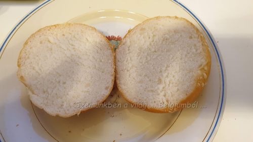 Volt a csomagban tigriszsömle és bagett is, Barnusnak a zsömlét vágtam ketté.