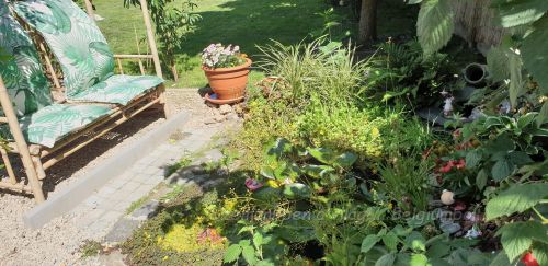 Pedig már nagyon kikellene takarítani, de még mindig vannak gőték a tóban. Nem tudom miért, máskor már május végén, június elején elmentek és csak tavasszal jöttek vissza. Most meg még mindig ott lubickolnak. Nincs sok, de vannak. Igy nincs szivem megbolygatni a tavat, hogy kiszedjem azt a rengeteg gyökeret ami benőtt a tóba. Ott éltek, élnek, laknak, mindig abban viháncoltak. Még megvárom a későre maradókat. Addig is ilyen kis nomád marad ez a tó. ❤