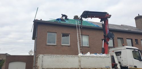 Van 3 hónapunk, hogy kötbér nélkül megcsináltassunk mindent. Hétfőn jöttek a tetőt csinálni. És mi csak ámultunk, ahogy szépen leszedték az azbesztet. Hallottuk másoktól, hogy nem figyeltek rá, dobálták, szanaszét tört, de itt nálunk nagyon szépen, pár óra alatt leszedték.