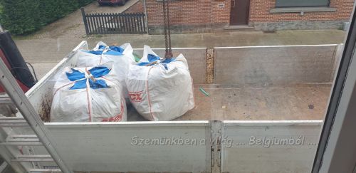Ezekben a lefedett zsákokban vannak a megsemmisitésre váró azbeszt palák. Ennek elszállitását is vállalták.