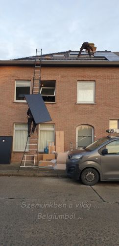 Nem telt el fél óra, csöngettek. 🙄 Két nagyon szimpi fiatalember elmondta, hogy ők bizony jöttek a napelemeket felszerelni. Egészen sötétedésig dolgoztak.