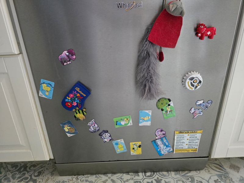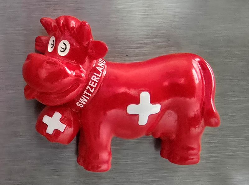 Ábel a mosogatógép előtt csücsül, és az ajtóra tapadt mágneseket rakosgatja ide-oda. A legjobb játék a világon! Amikor észreveszi az új, vörös svájci tehénfigurát, felcsillan a szeme, és rögtön utána nyúl. Biztos vagyok benne, hogy Astridnak is tetszeni fog majd.