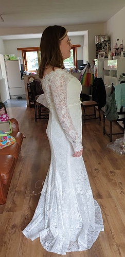 Örökké hálás leszek azért, amiért egy lazább szabályozás mellett mégis elmentünk és megengedted, hogy Esztikével vegyünk neked egy menyasszonyi ruhát. Babi átalakította a méretedre.